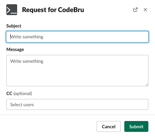The Codebru Slack app integrates with Zendesk to allow clients to open support tickets directly from their Slack workspace.